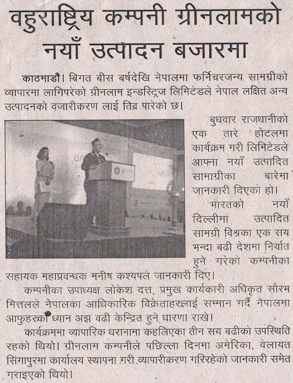 Multinational Company Greenlam Launches New Products in (Nepal) Market